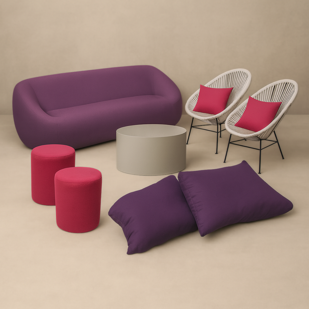 La Sala Galaxy para 10 personas es ideal para cualquier tipo de fiesta o evento . Incluyen 2 Sofas galaxy para 3 personas y 4 Cojines gigantes con una mesa de centro en el color que elijas de la línea. Los Cojines Galaxy se colocan en el piso para que la gente se sienta o acueste de forma más informal. Son de nuestra línea Galaxy